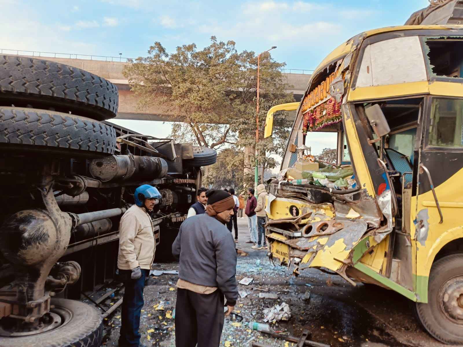हादसों से भरा सरकार उपकार बस का सफर कंटेनर को मारी टक्कर कई यात्री घायल